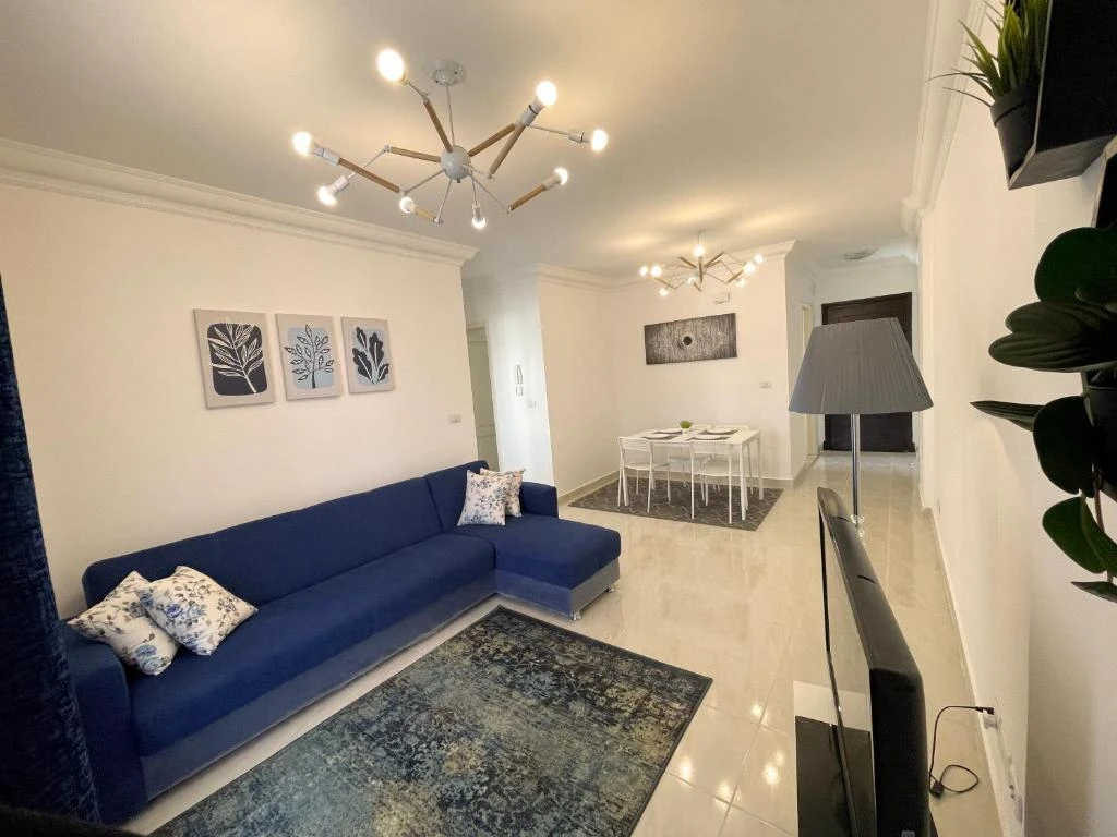 Modern 2-bedroom apartment with 1 bathroom, fully equipped kitchen, and a balcony overlooking the se...